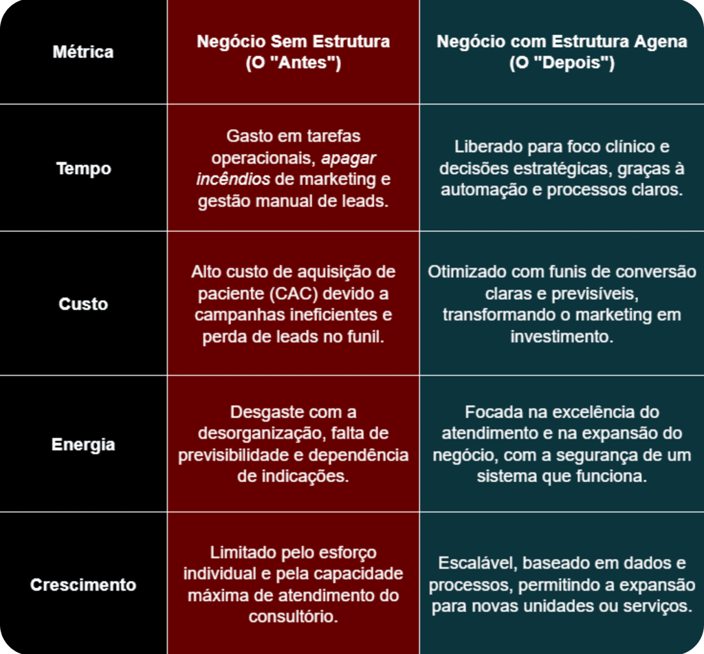 O faturamento estagnou, e qualquer tentativa de escalar exige um esforço desproporcional, ameaçando sua qualidade de vida. A causa raiz não é a falta de pacientes, mas a ausência de um sistema para gerenciar a demanda.